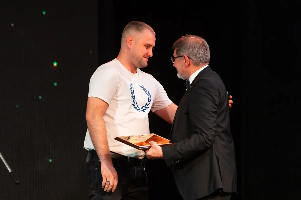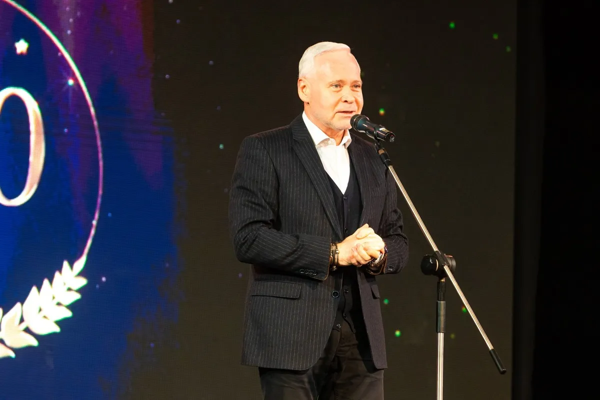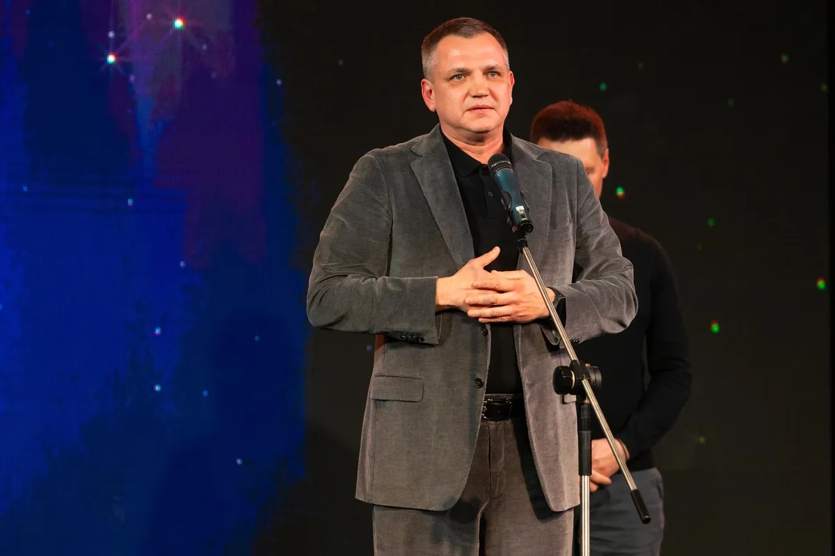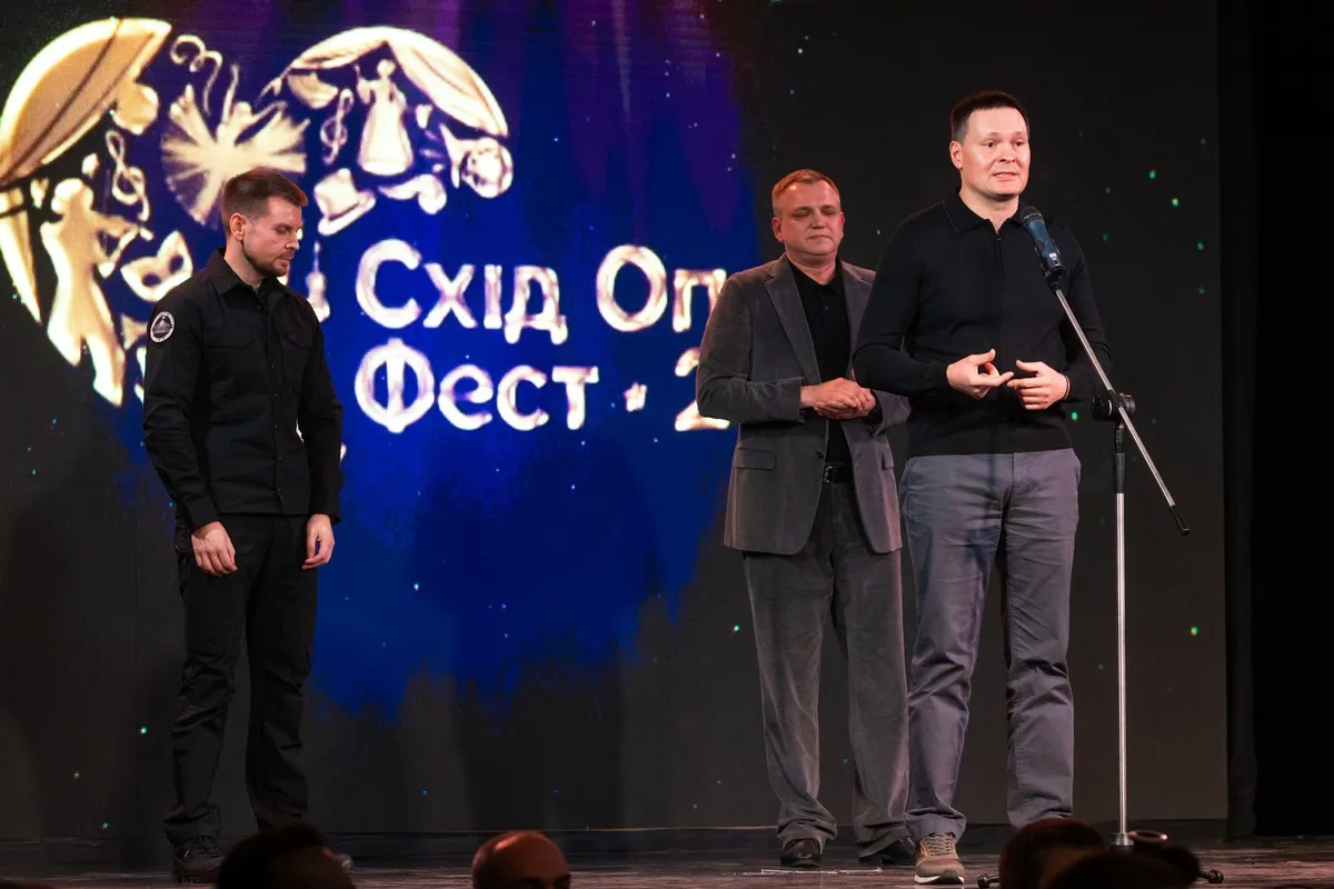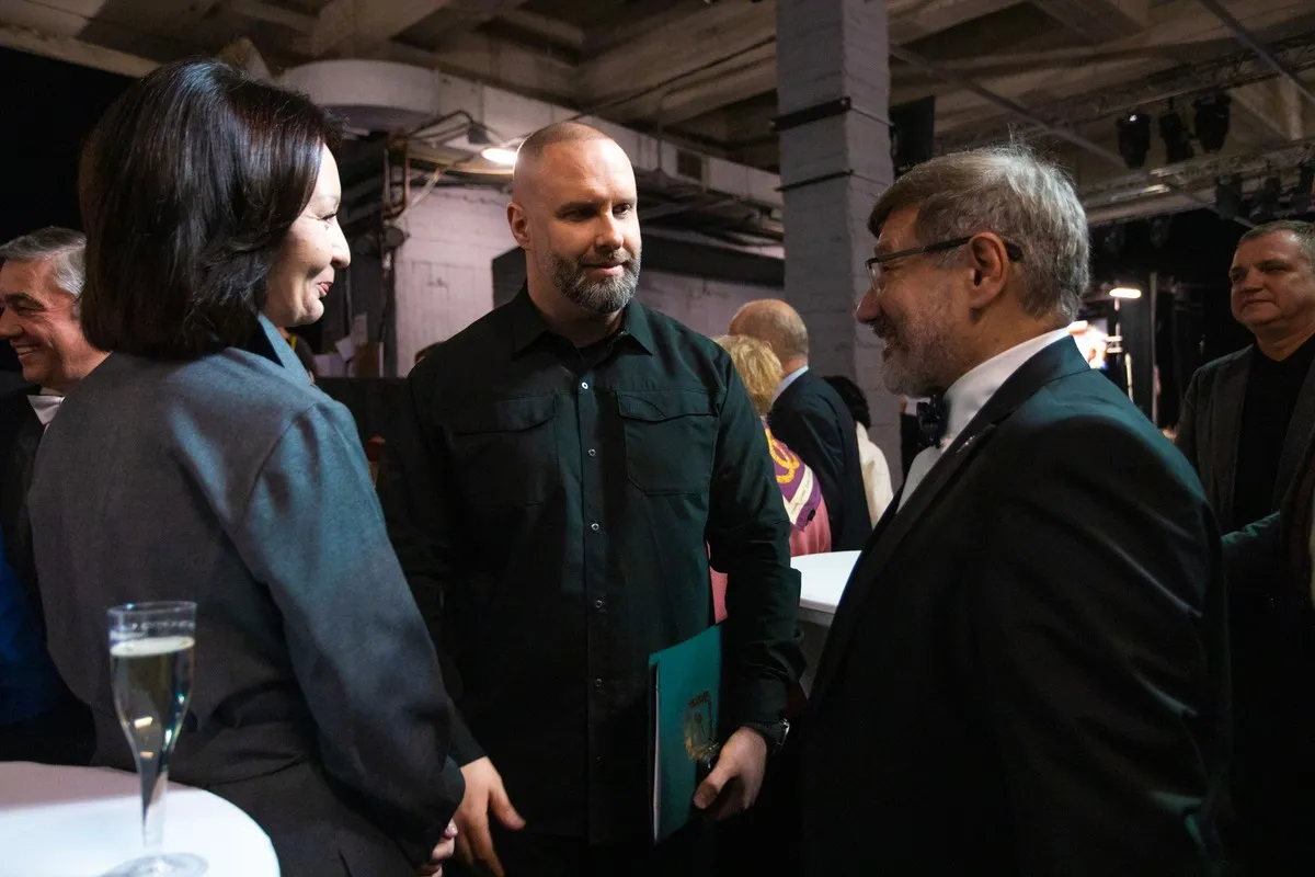 Наступним на сцену вийшов голова Харківської обласної військової адміністрації Олег Синєгубов, який виголосив вітання на адресу театру та передав слова подяки від Президента України Володимира Зеленського.