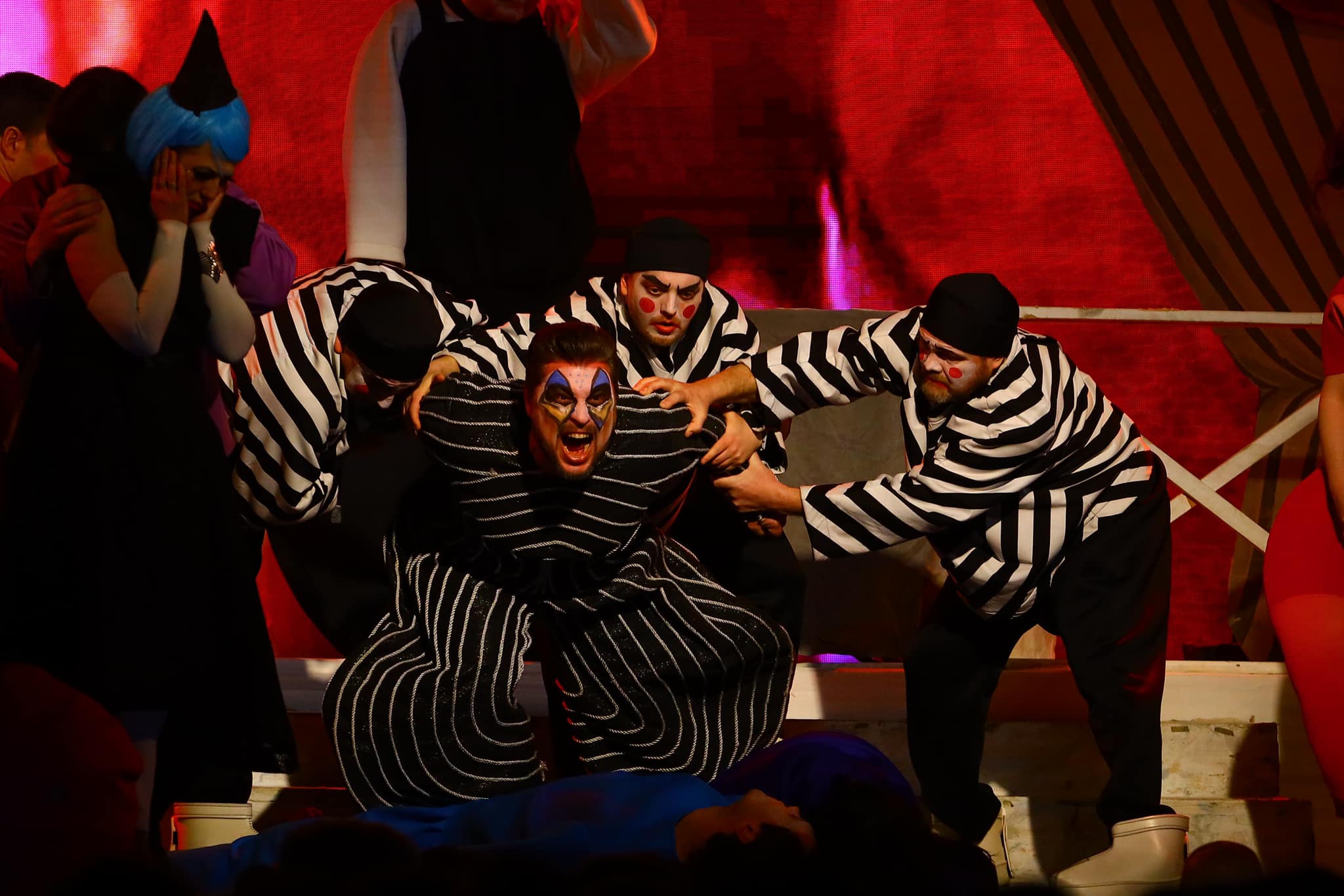 Прем’єра «Паяців» відбулася в Італії 1892-го. А вже через два роки, 1894-го, опера була представлена на харківській сцені. Лише у ХХ столітті прочитань цього твору в нашому місті нараховується щонайменше сім. Постановники нової версії спектаклю, що побачив світло рампи вже у ХХІ сторіччі, повністю переосмислили хрестоматійне трактування опери, вигадали нове місце дії, нові образні характеристики та біографії героїв – власне, створили нестандартне драматургічне і художнє рішення, яке змусило глядачів по-новому поглянути на вічну історію любові, ревнощів та помсти. А нині творча команда театру адаптувала цю постановку для умов нашої безпечної сцени Loft Stage.